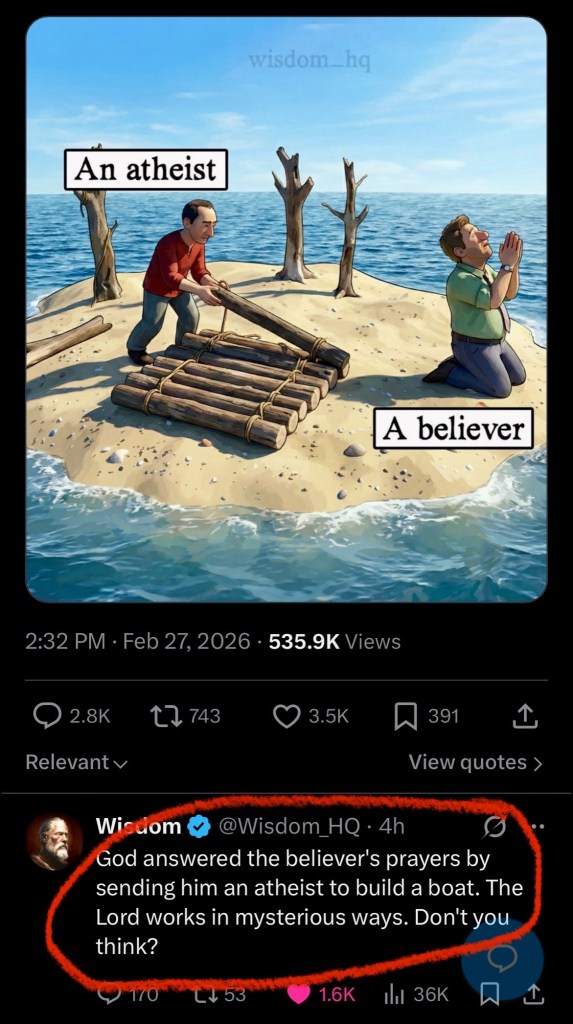 Posted by the Relidicous Editorial Office 22:55 PM on February 27, 2026 God works in mysterious ways Check out our funny Christian themed T-Shirts at relidicous.printify.me Rate this:Share this: Email a link to a friend (Opens in new window) Email Share on Facebook (Opens in new window) Facebook Share on X (Opens in new window) X Share on LinkedIn (Opens in new window) LinkedIn Print (Opens in new window) Print More Share on Pinterest (Opens in new window) Pinterest Share on Reddit (Opens in new window) Reddit Share on Tumblr (Opens in new window) Tumblr Like Loading...